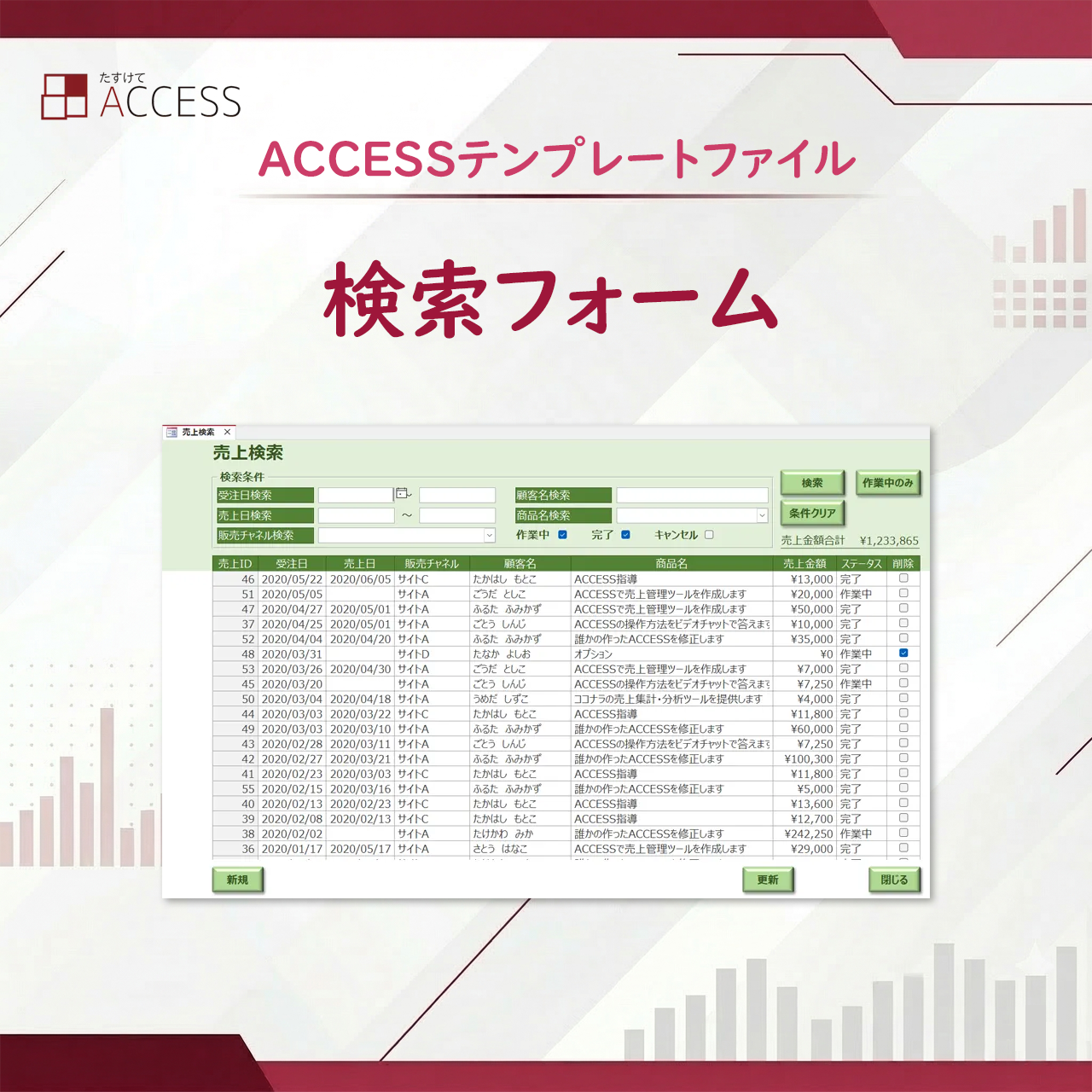 本商品は、Accessでレコードを検索する機能を搭載したフォームの「実装専用テンプレート」です。